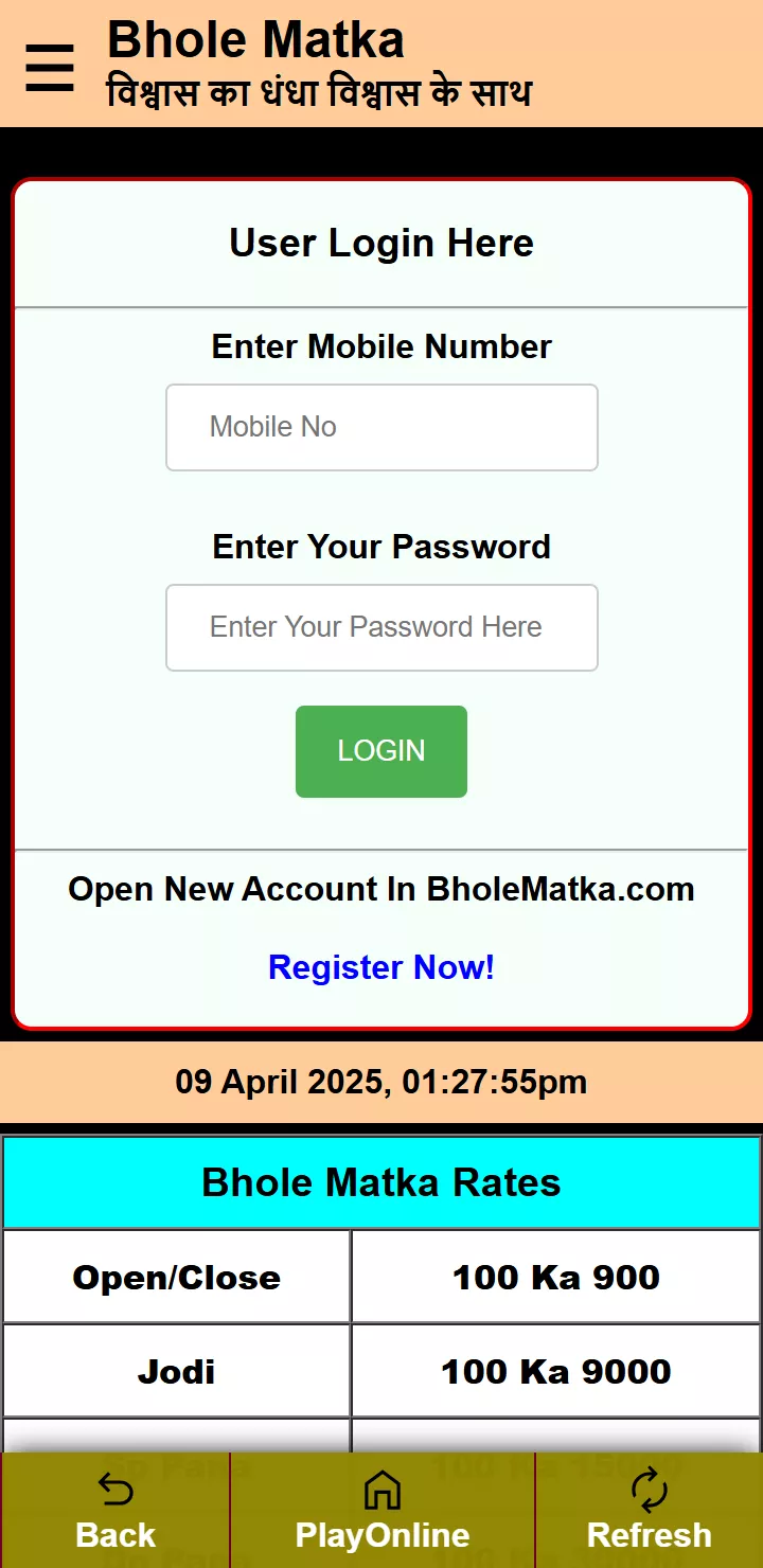 Copyright 2025 BHOLE MATKA All Right Reserved